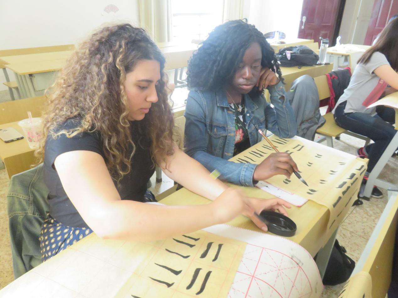 第二堂课是书法课,老师先介绍了书法在中国历史文化中浓厚的底蕴,然后给大家示范了正确的握笔姿势,教他们书写横、竖等基础笔画,最后,留学生都在书法纸上写下自己喜欢的字或者名字,收获多多,大家不仅体验了书法的厚重历史,也学会了中国书法的基本要领。