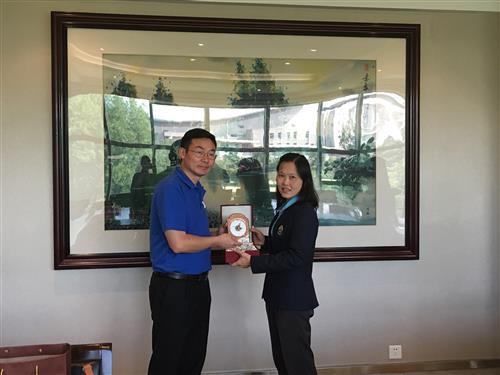 座谈会上,国际学院院长敬龙军首先对两位教师访问我校表示热烈的欢迎,并向她们介绍了国际学院近年来的国际化教育工作的基本情况以及我校对外汉语教学工作所取得的成绩,同时对瓦莱恒中学学生在国际学院学习的良好表现给予了高度赞扬。并希望Ms Nopporn Kumraksa和Ms Amita Muangteerak两位老师在全面考察我校国际化办学的各种软硬件设施后,积极搭建我校与瓦莱恒中学进一步交流的合作平台,为我校输送更多的留学生生源。