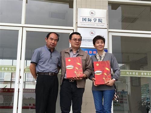 国际学院党总支吴郁良书记向留学生家长赠送礼物