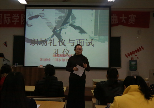 12月18日晚,国际学院在理学楼C306举办2013级学生就业指导讲座。本次讲座由学校双创中心副主任张丽娃老师主讲,2013级全体学生参与了本次讲座。