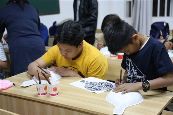晚上,学员们学习了绘画脸谱。京剧脸谱作为京剧艺术的一部分,对学员们的吸引力很强。课上,老师首先向学员们展示了不同颜色、图案的脸谱,并分别从戏剧和美术的角度,对博大精深的脸谱文化作了介绍。其次,老师还通过现场绘画脸谱,给学员们讲述了揉、勾、抹、破四种基本着色类型。最后,学员们用风格迥异的脸谱成品作,诠释了对中国文化的理解。