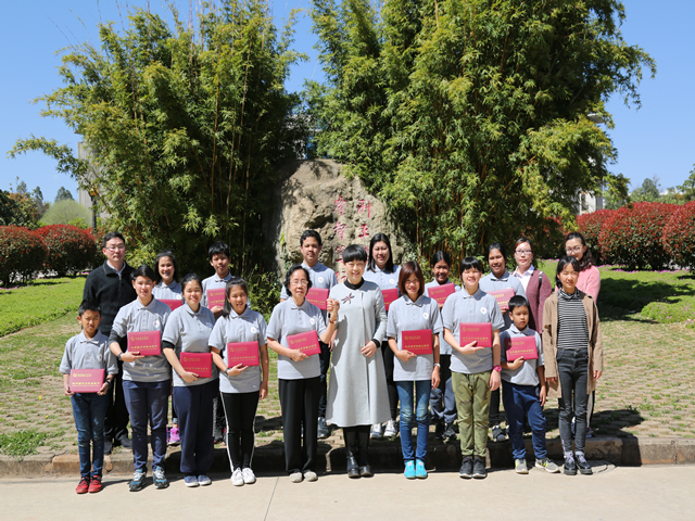3月22日中午,曲靖师范学院校长浦虹来到国际学院看望阿伦维塔亚中学汉语语言文化体验班老师、学员,浦校长首先对阿伦维塔亚中学汉语语言文化体验班老师、学员表示深切问候,并代表曲靖师范学院对泰国阿伦维塔亚中学与我校合作以来对我校的信任致以谢意。浦校长就此次汉语语言文化体验营中开展的特色课程和基本情况进行了了解,她希望学员们回到泰国以后讲中国故事、说中华文化,并和爸爸妈妈分享汉语语言文化体验班的收获。最后,浦虹校长和国际学院院长敬龙军一同为汉语语言文化体验班学员颁发了汉语语言文化体验营结业证书。(国际学院 胡江艳 供稿)