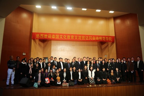 4月7日晚,泰国文化教育交流团欢迎晚会在曲靖师范学院音乐与舞蹈学院演播厅隆重举行。泰国文化教育交流团的85位嘉宾和国际学院师生欢聚一堂,共同分享了一场中华文化的艺术盛宴。