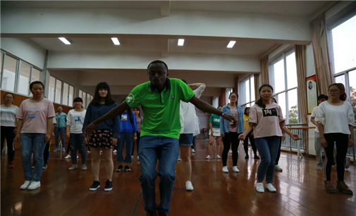 肯尼亚籍留学生Steven与中国学生面对面进行非洲舞教学
