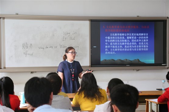在紧随其后的汉语教学基础课上,学员们也表现出了浓厚的兴趣。学员们个个聚精会神,从实用和学术等不同角度和老师学习交流了汉语教学中的基础知识和一些实用技巧,老师也就中外文化的差异,给学员们分享了一些跨文化交际的技巧和方法。学员们在原来已有的基础上,加强了汉语教学的能力。