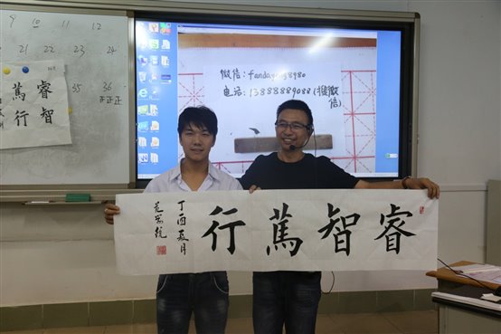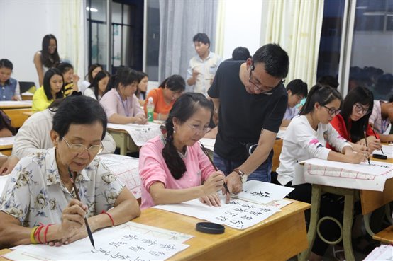 墨池笔冢任纷纷,参透书禅未易论。中国书法课程虽然排在了今天的最后一节课,学员们也上了数个小时的课,但这丝毫不影响学员们的热情,老师就上节课的知识给学员们讲了一些需要注意的地方,便让学员们书写属于自己书法作品,并在完成后进行了不记名的评比,最后大家公认的写得最好的学员获得了老师用心书写的墨宝。