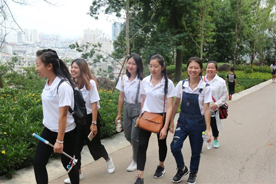 踏着清晨的阳光,学员们在老师和志愿者的带领下登上了寥廓山顶,参观了堪称中国第二、西南第一高的人造塔——靖宁宝塔。通过塔内文字图片的浏览和老师的讲解,学员们了解到了许多曲靖的历史和故事,登高而望远,站在观景台上,营员们俯瞰了整个曲靖,曲靖的整体规划有了一定的了解。