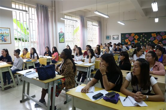上午,学员们到新校区进行了教学实践考察,学员们听了刘老师和付老师等14位老师给我校留学生上的词汇和口语等课程,感受到了我校对外汉语教学工作的认真和严谨,学到了很多对外汉语教学技巧。学员们表示喜欢我校教师对外汉语教学的方式方法,有很多值得学习和借鉴的东西,并表示今早的教学实践考察让她们对这几天课堂上所学知识的运用有了更深的认识。