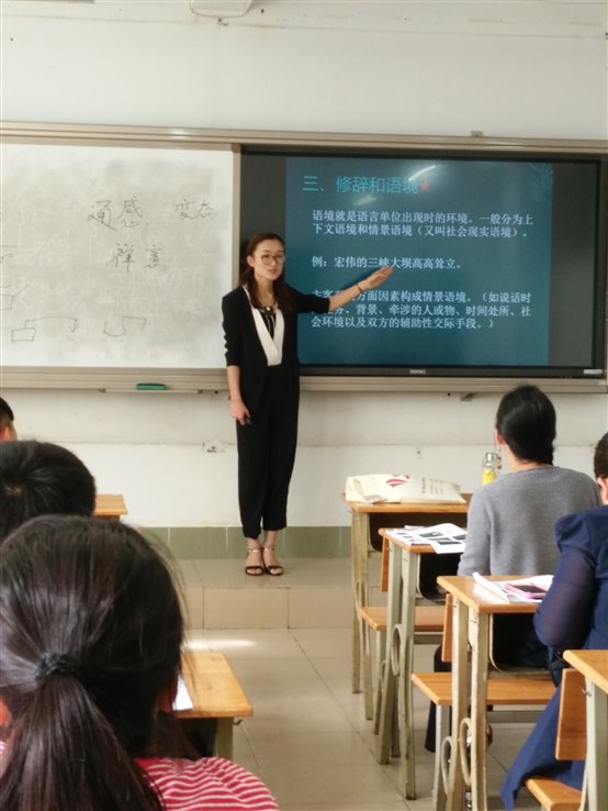 随后,汉语教学是今天的最后一门课程,老师就汉语教学中会遇到的问题进行了分析和讲解,并从相对语法来说的进行正确得体的交际和功能两方面对汉语教学中课文讲授进行了测评,期间重点讲授了比较句、句法结构、语意要求、语用要求和展示语法点技巧等。